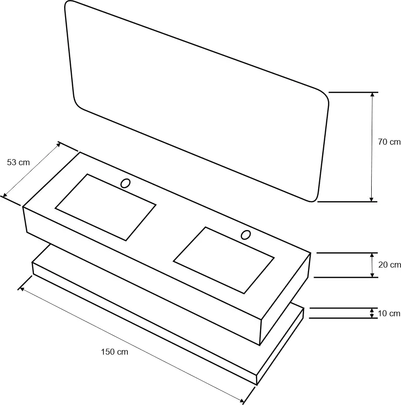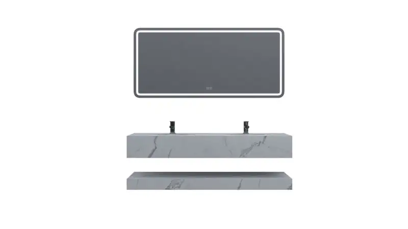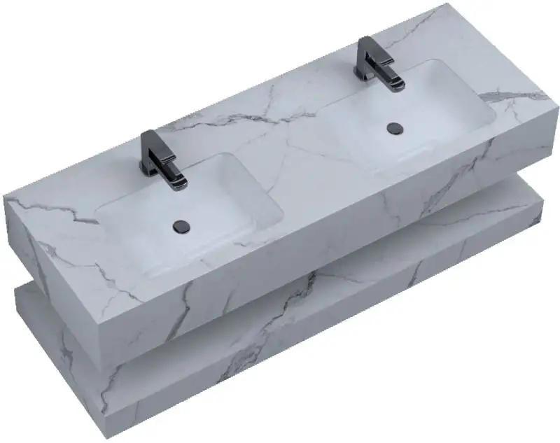 Fiecare set mobilier de baie modern este format din patru piese esentiale. Cele doua blaturi din compozit ceramic au o nuanta distinctiva de alb marmorat, aducand o nota de eleganta in baia ta.