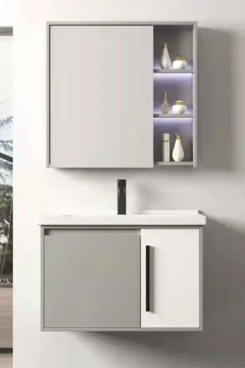cest set mobilier baie 60cm cu lavoar ceramic si dulap cu oglinda este ideal pentru cei care cauta un design modern si cu multe functii practice.
