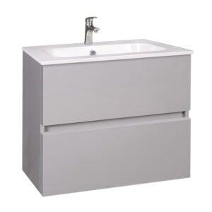 Dacă doriți să vă îndepărtați de finisajele albe și să schimbați ritmul, alegeți mobilierul de baie Ella de la www.cazidebaie.ro. Asortat perfect cu chiuveta albă, acest mobilier are un finisaj gri deschis sau alb lăcuit lucios. Alegeți și alte accesorii asortate și vă veți bucura de fiecare minut în baie.