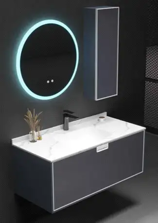 Cu finisajul mat si aspectul ca de marmura alba, acest set de mobilier pentru baie se integreaza perfect in diverse stiluri de amenajare.