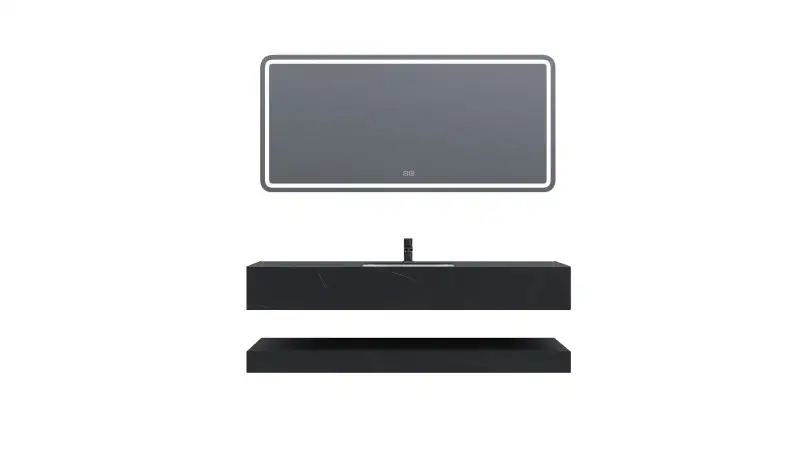 Setul este compus din 3 elemente: doua blaturi din compozit ceramic de culoare negru, cu finisaj mat + un lavoar ceramic alb.