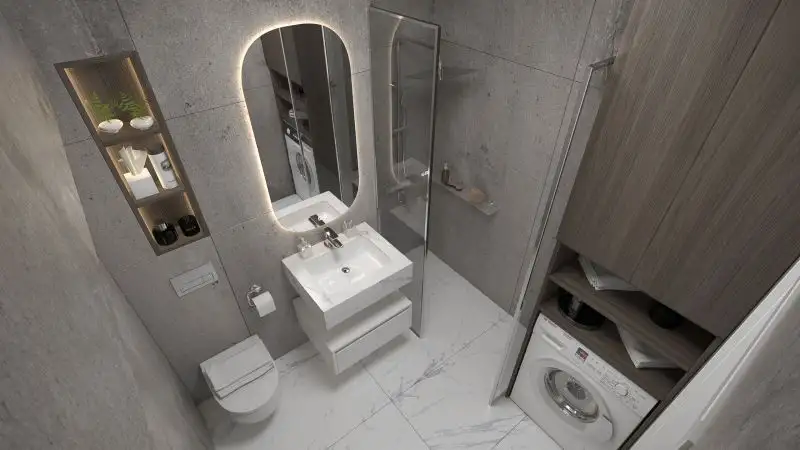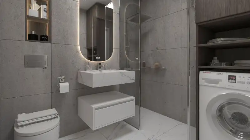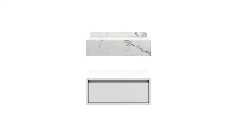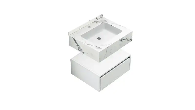 Cu finisajul mat si aspectul ca de marmura alba, acest set de mobilier pentru baie se integreaza perfect in diverse stiluri de amenajare.