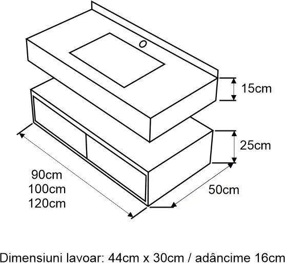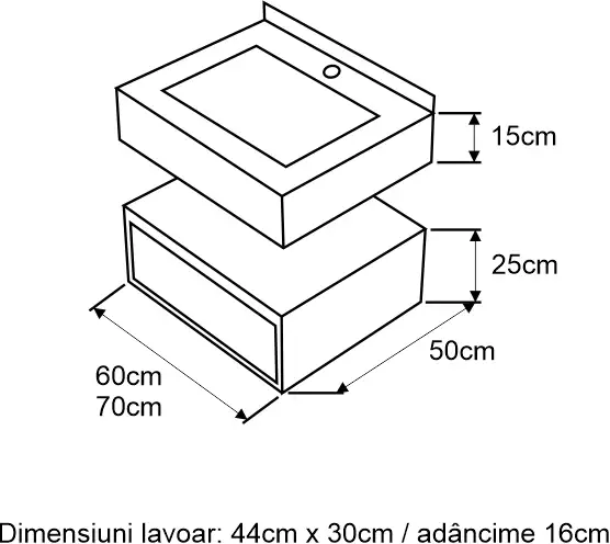 Corpul suspendat, confectionat din placaj hidrofugat, este prevazut cu un sertar cu inchidere lenta (soft close), asigurandu-ti un spatiu de depozitare practic si eficient. In plus, confera rezistenta si durabilitate in timp.