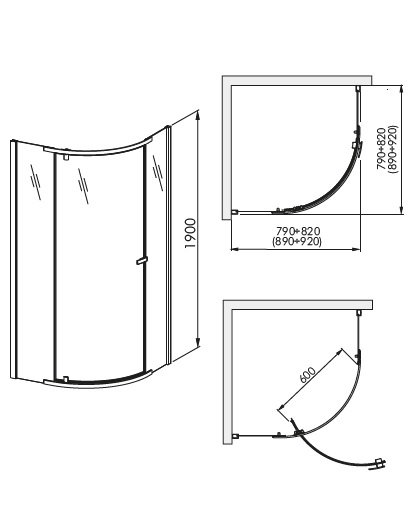 Cabina de dus semirotunda cu usa batanta cu inchidere magnetica si 2 parti fixe.