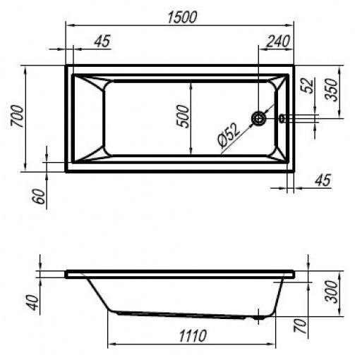 Cada baie rectangulara cu dimensiunea 150 x 70 cm.