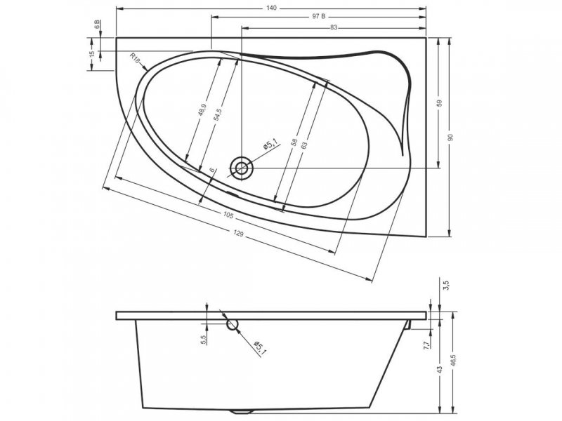 Material: acril ranforsat cu fibra de sticla