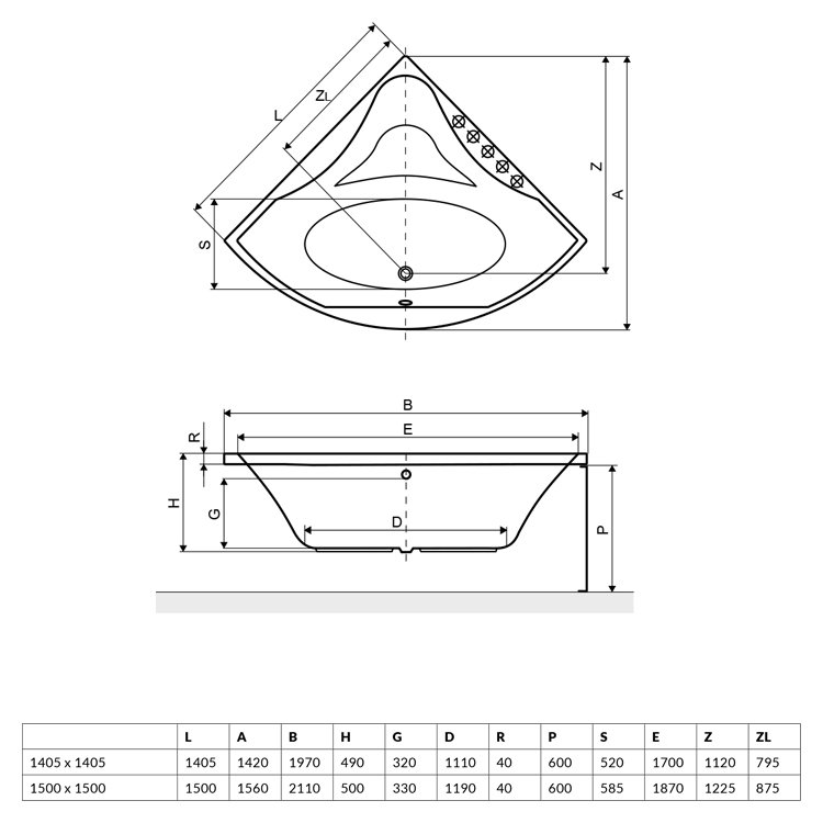 Cada colt cu dimensiunea 140 x 140 cm.