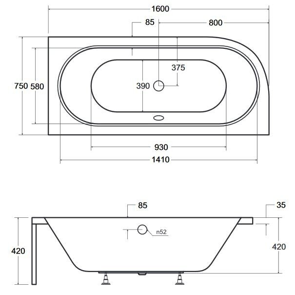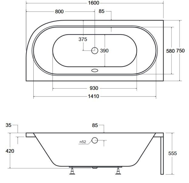 Material: acril ranforsat cu fibra de sticla