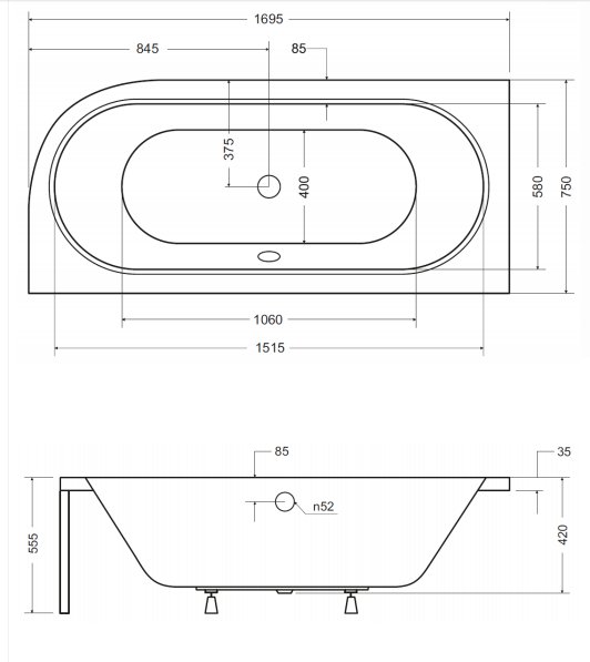Material: acril ranforsat cu fibra de sticla