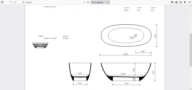 Cada baie freestanding model retro cu dimensiunea 1600x705 mm.
