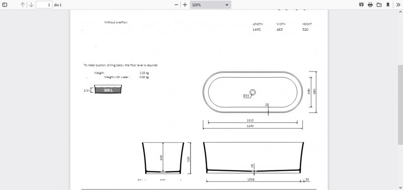 Cada baie freestanding cu dimensiunea 169x69 cm.
