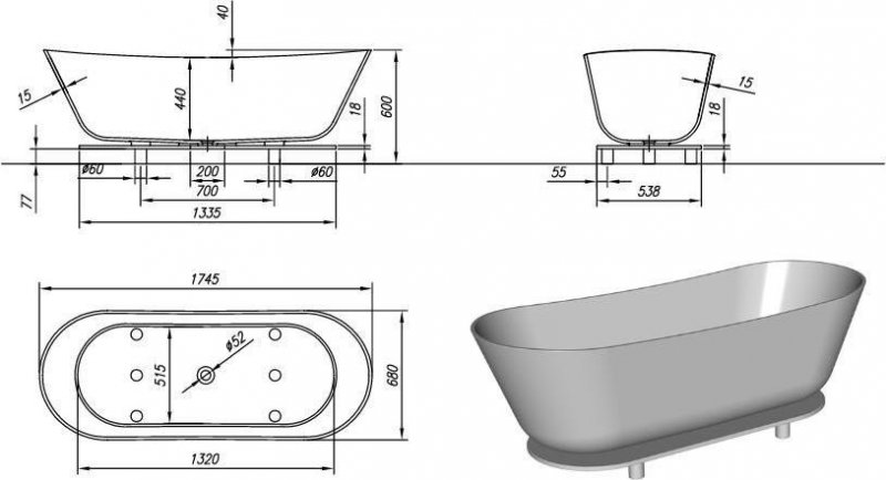 Cada de baie se poate monta in mijlocul incaperii sau langa perete.