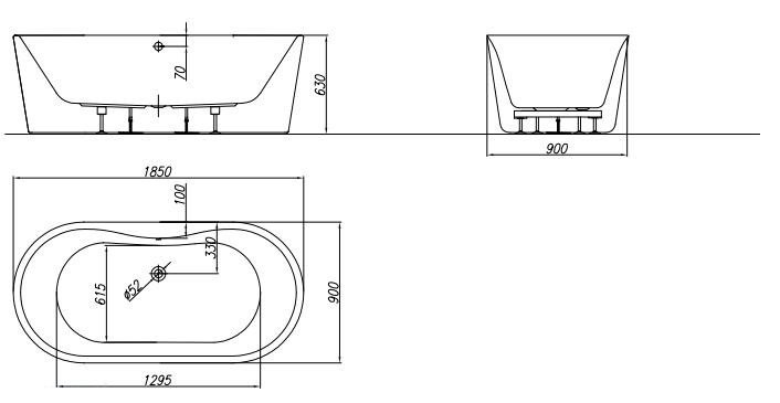 Cada baie freeestanding ( tip insula ) cu dimensiunea 185 x 90 cm.