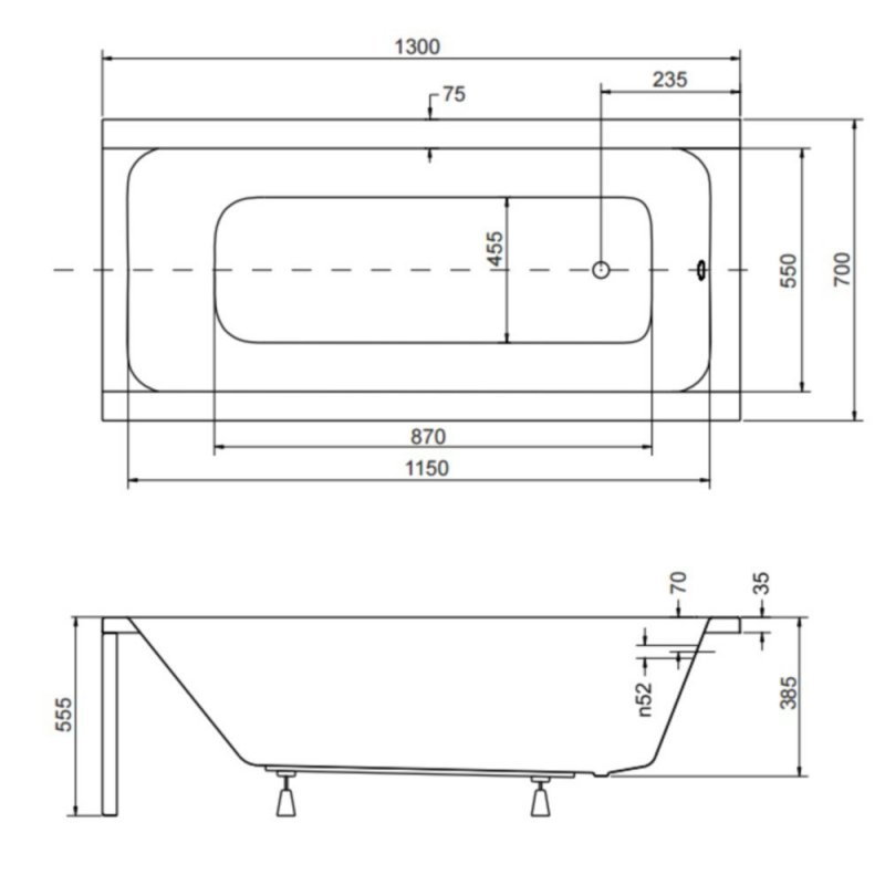 Cada baie rectangulara cu dimensiunea 130 x 70 cm.