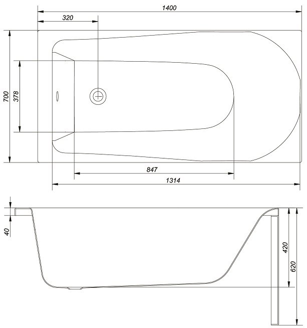 Cada de baie colt cu dimensiunea 140x70 cm.