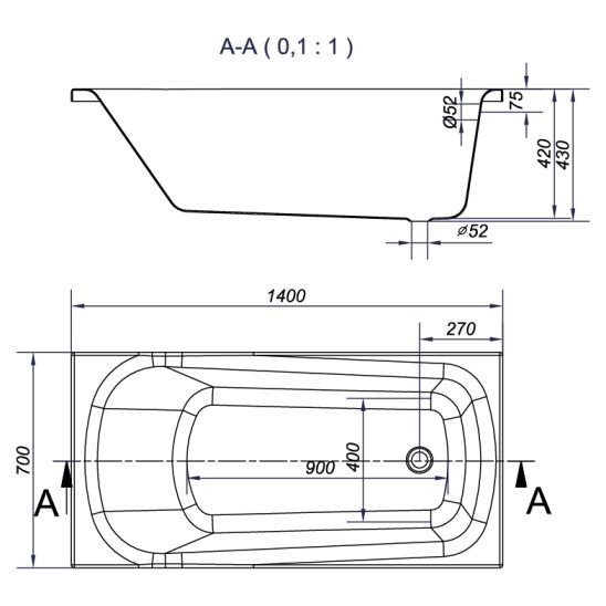 Cada baie dreapta 140x70 cm cod.CANACS1470