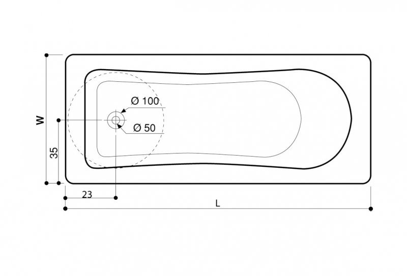 Cada baie rectangulara cu dimensiunea 150 x 70 cm.