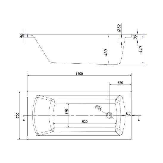Cada baie rectangulara cu dimensiunea 150 x 70 cm.