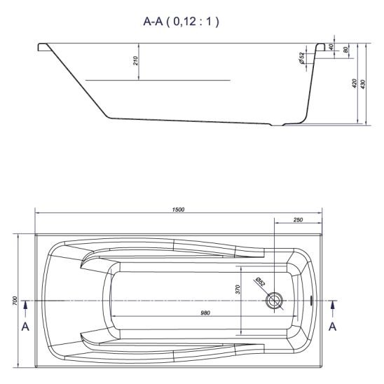 Cada baie rectangulara cu dimensiunea 150 x 70 cm.