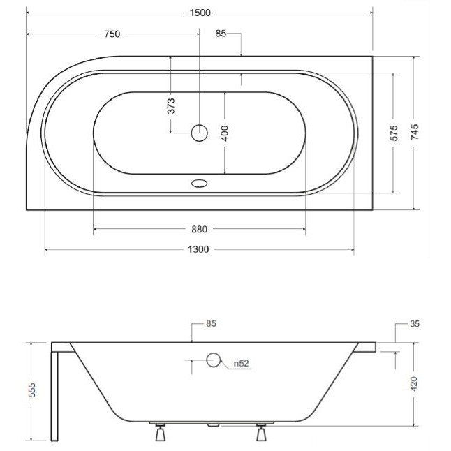 Cada baie rectangulara cu dimensiunea 150 x 74 cm.