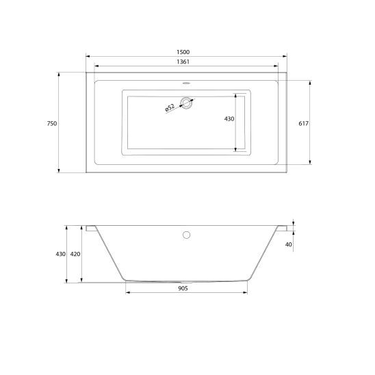 Cada baie rectangulara cu dimensiunea 150 x 75 cm.