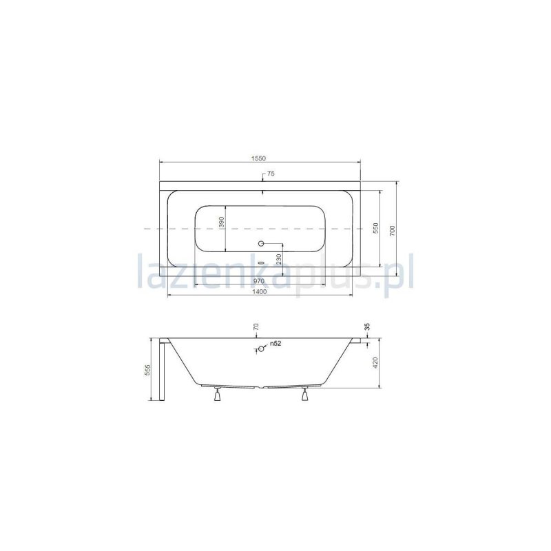 Cada baie rectangulara cu dimensiunea 155 x 75 cm.