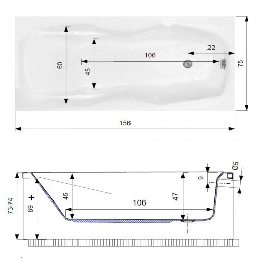 Cada baie rectangulara cu dimensiunea 156 x 75 cm.