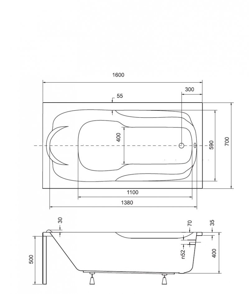 Cada baie rectangulara cu dimensiunea 160 x 70 cm.