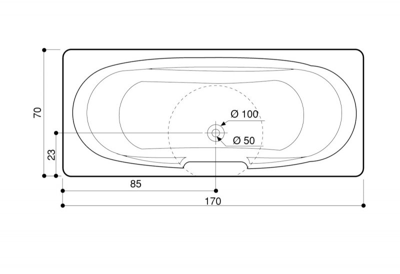 Cada baie dreptunghiulara cu dimensiunea 170 x 70 cm.