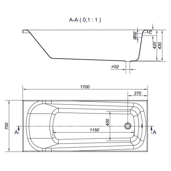 Cada baie dreptunghiulara cu dimensiunea 170 x 70 cm.