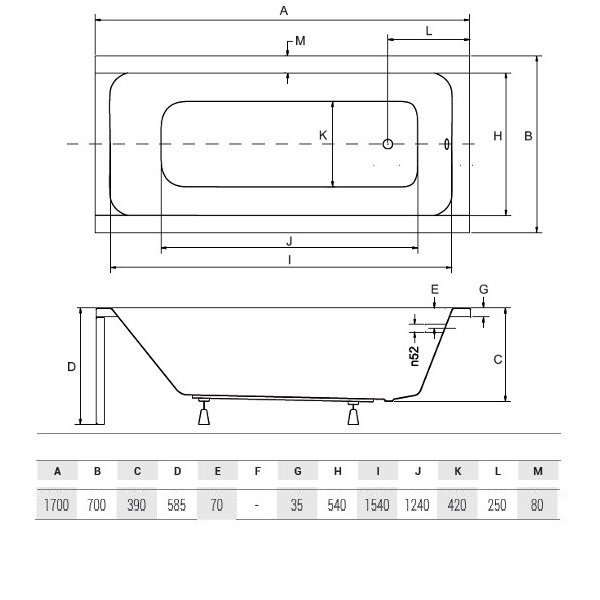 Cada baie rectangulara cu dimensiunea 170 x 70 cm.