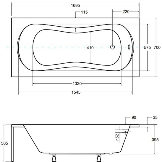 Cada baie rectangulara cu dimensiunea 170 x 70 cm.