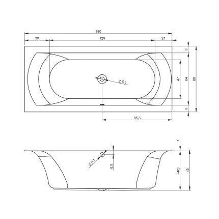 Cada baie rectangulara cu dimensiunea 180 x 80 cm.
