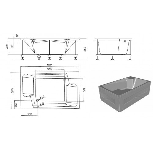 Cada baie rectangulara cu dimensiunea 190 x 120 cm.