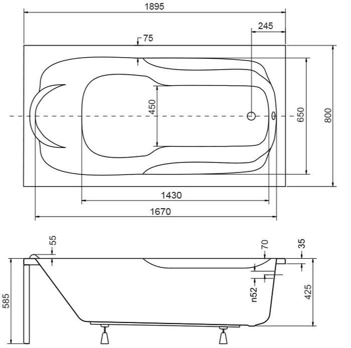Cada baie rectangulara cu dimensiunea 190 x 80 cm.