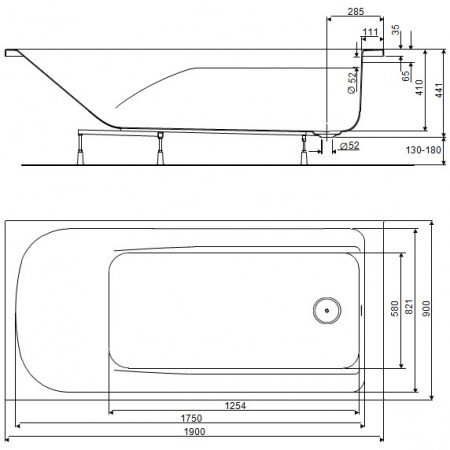 Cada baie rectangulara cu dimensiunea 190 x 90 cm.
