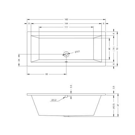 Cada baie rectangulara cu dimensiunea 160 x 70 cm.