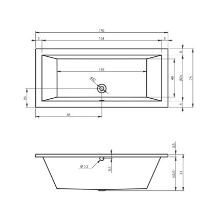 Cada baie rectangulara cu dimensiunea 170 x 75 cm.