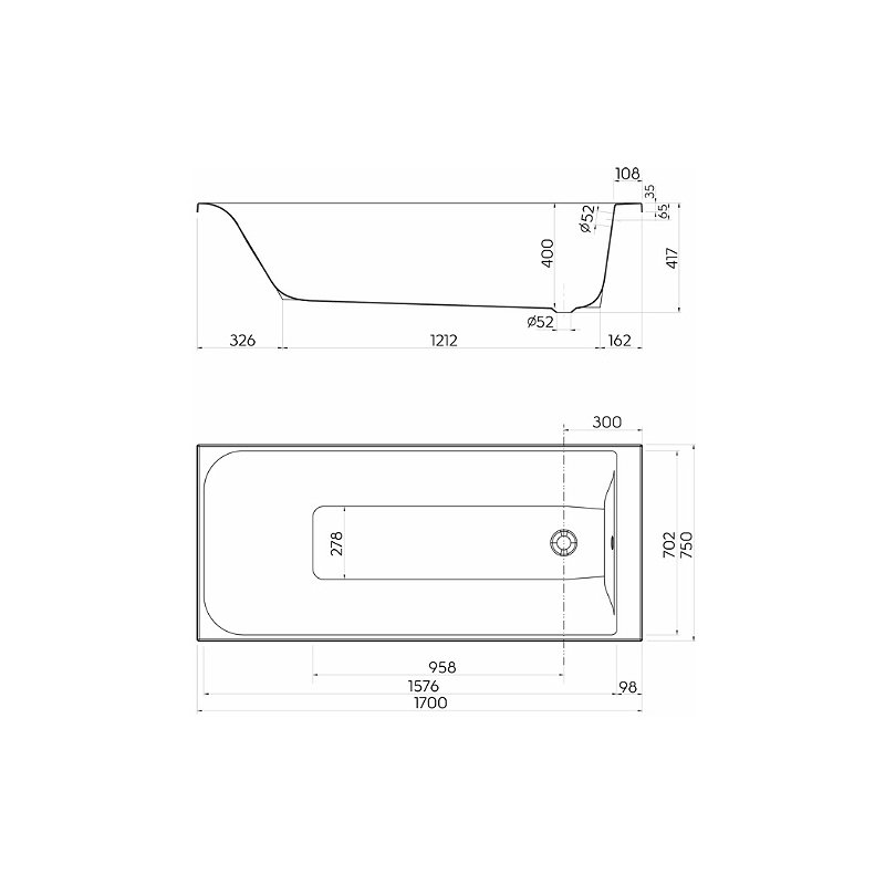 Cada baie rectangulara cu dimensiunea 170 x 75 cm.