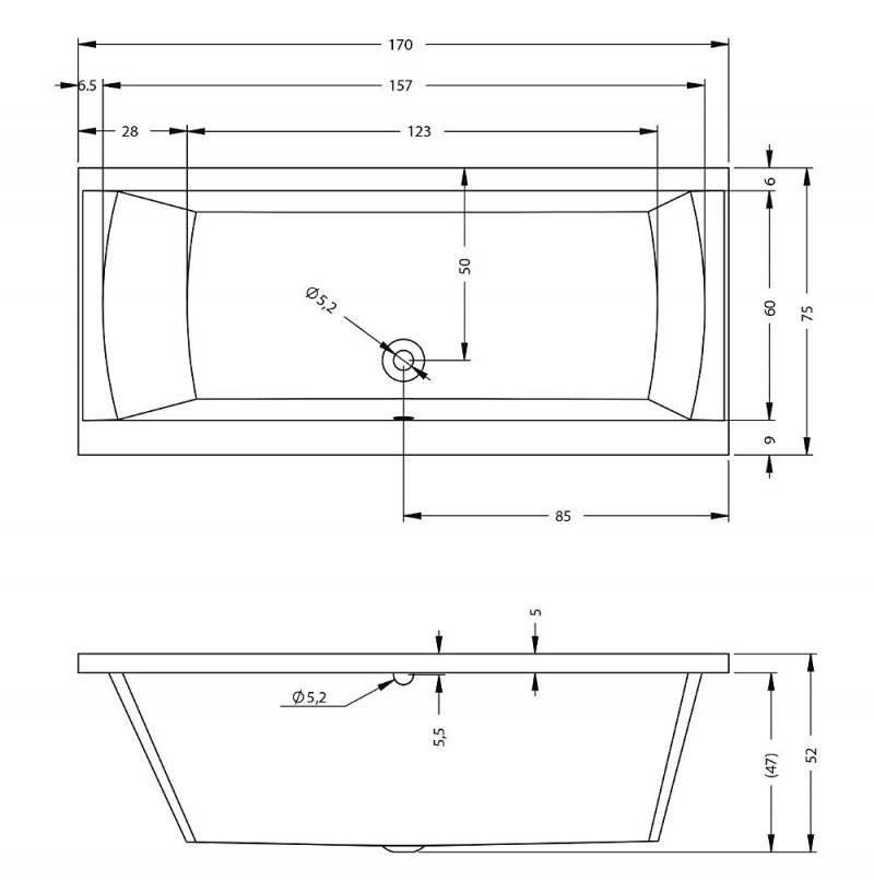 Cada baie rectangulara cu dimensiunea 170 x 75 cm.