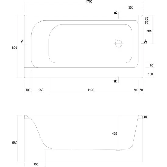 Cada baie rectangulara cu dimensiunea 170 x 80 cm.