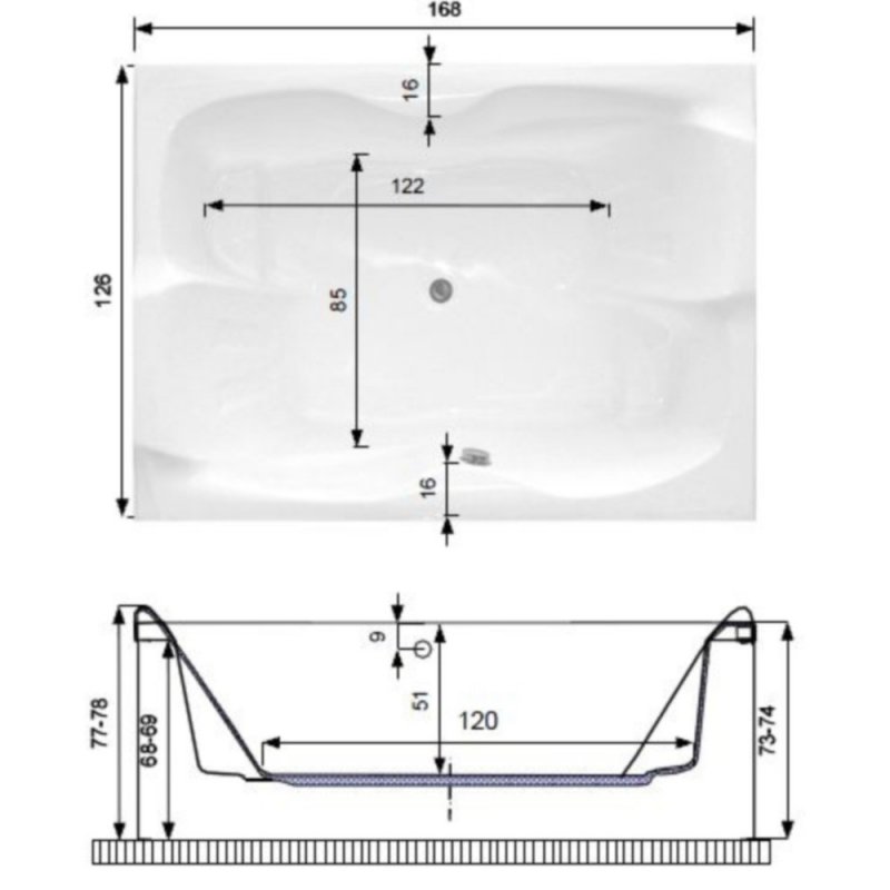Cada baie dubla colt cu dimensiunea 168 x 126 mm.