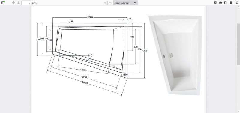 Cada baie dubla colt cu dimensiunea 180 x 125 cm.