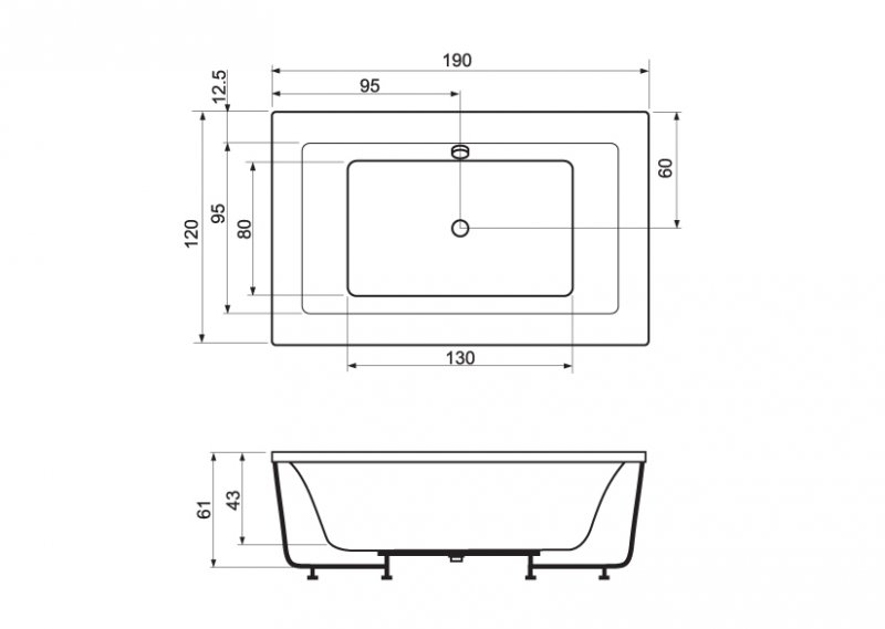 Cada baie dubla cu dimensiunea 190 x 120 cm.