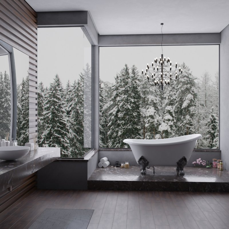 Cada baie freeestanding ( tip insula ) cu dimensiunea 150 x 75 cm.