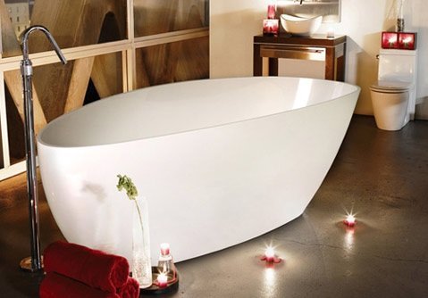 Cada baie freestanding cu dimensiunea 156x71cm.