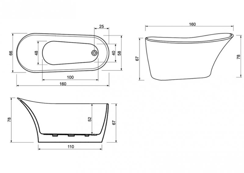 Cada baie freeestanding ( tip insula ) cu dimensiunea 160 x 66 cm.