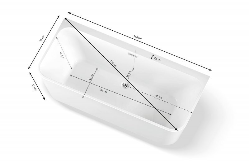 Cada baie freeestanding ( tip insula ) cu dimensiunea 160 x 75 cm.