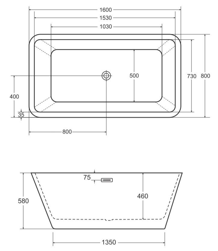 Cada baie freeestanding ( tip insula ) cu dimensiunea 160 x 80 cm.