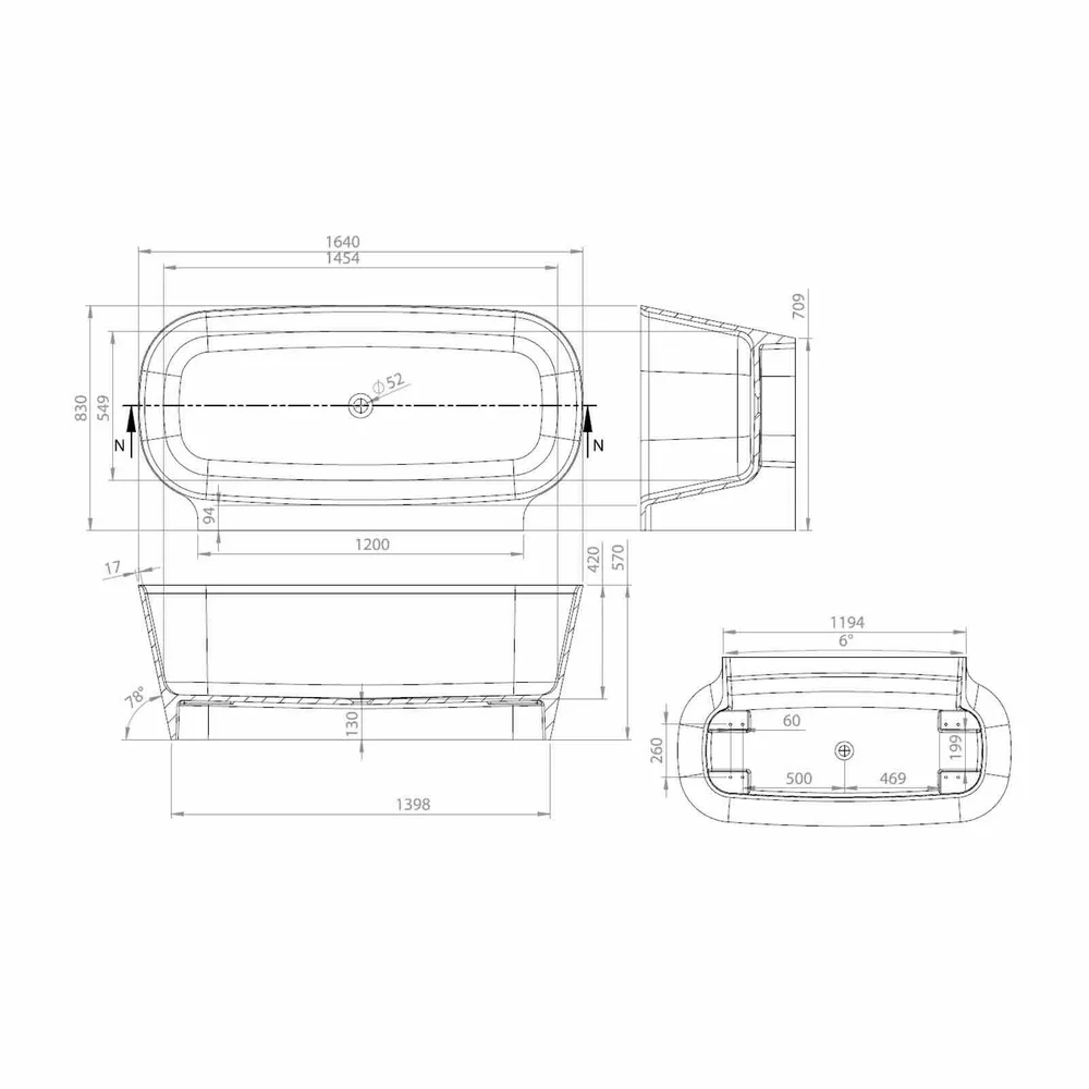 Cada baie freestanding cu dimensiunea 164x83cm.